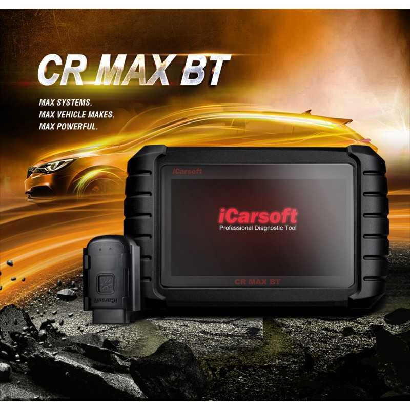 iCarsoft CR MAX 2025. Tablet de 7" tactil. Máquina diagnosis multimarca completa para todos los sistemas del vehículo. Reinicio del servicio de aceite (OLS), reinicio del freno de estacionamiento electrónico (EPB), reinicio del ángulo de dirección (SAS), regeneración del DPF, Reinicio electrónico del acelerador, etc..